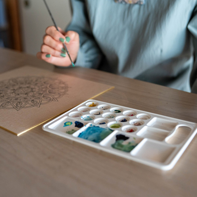 色紙サイズの和紙に曼荼羅絵を写経していただきます。