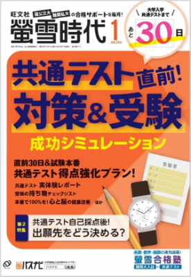 教育出版社の旺文社(東京都新宿区 代表取締役社長 粂川秀樹)は、国公立大・難関私立大合格を目指す受験生へ向け、共通テスト直前対策を特集した 月刊『螢雪時代 1月号』を2023年12月14日に刊行いたします。