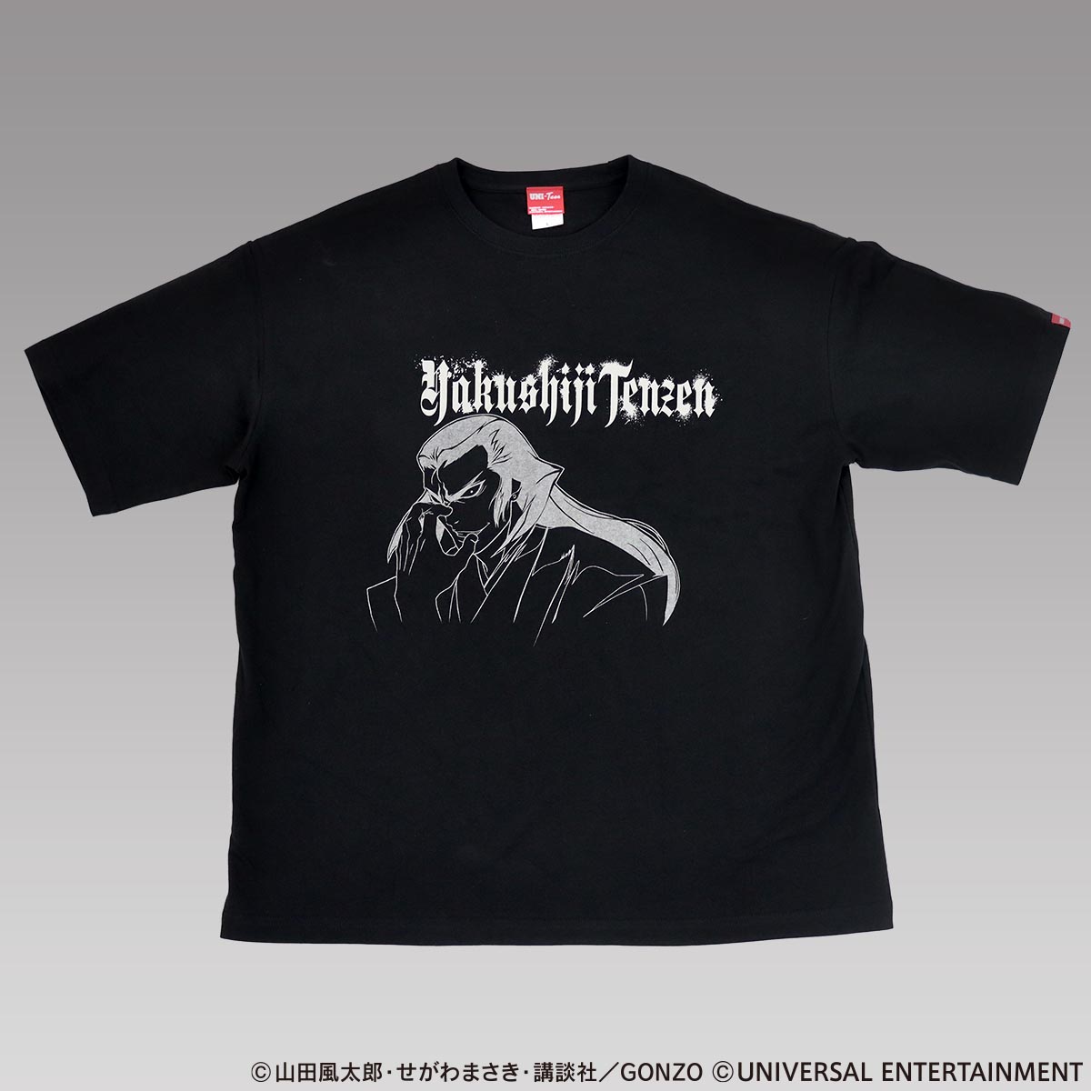 闇に佇む天膳をメインに、ローマ字で書かれた「Yakushiji Tenzen」の文字を合わせたクールなTシャツです。