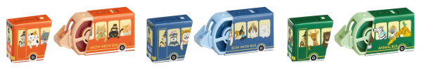 デザインは、ふんわりやわらかなピンク、パープル、グリーンのグラデーションの定番3 種類。さらに限定デザインとして本体ケースをバスに見立て、ねこ・いぬ・どうぶつたちが乗車した、レッド(ねこ)、ブルー(いぬ)、フォレストグリーン(どうぶつ)の3種類を発売します。のり色はケースに合わせたカラーで、箱型形状のコンパクトな使い切りタイプ。メーカー希望小売価格(税込)は275円です。