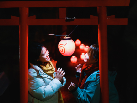 深々と続く淡路島の夜を真っ赤に照らす“和風イルミネーション”で、今まで見たことのない幻想的な忍の世界を体感しに行こう!この冬の夜にしか楽しめないイルミネーションやプロジェクションマッピング、フード、グッズをぜひお楽しみ下さい!