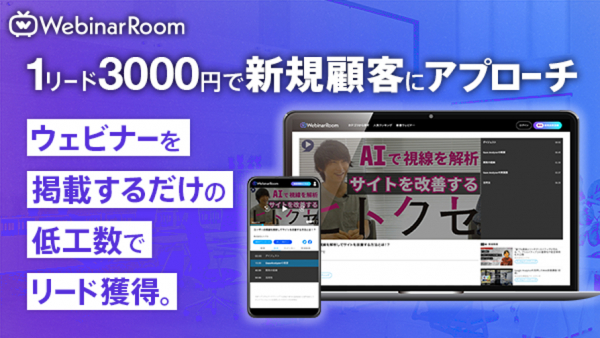 「Webinar Room」は、企業が過去に開催したウェビナーを集め、無料での視聴を可能にしたプラットフォームです。「Webinar Room」に動画を掲載することで、企業側はコストパフォーマンス良く新規見込み顧客の獲得ができ、視聴者は興味のあるウェビナー、過去に見逃したウェビナーをいつでも好きなタイミングで視聴することが可能になります。
