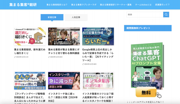 集まる集客(R)総研はAIやChatGPT・SNS・SEO・デザインなど、さまざまな領域の専門家がWEBマーケティングの調査・研究を行い、集客の問題解決方法や、ノウハウなどを個人起業家向けに特化して情報発信を行っているWEBメディアです。