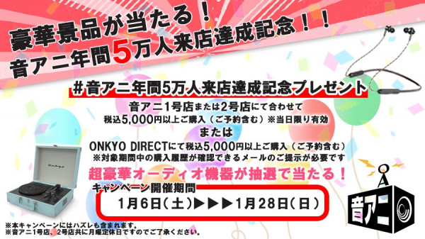 音アニ年間5万人来店達成記念プレゼントキャンペーン