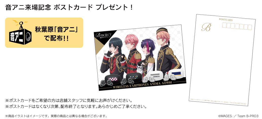 弊社秋葉原店舗「ONKYO DIRECT ANIME STORE/音アニ1号店(以下、音アニ1号店)」にて12月22日(金)11:00より(受注受付開始は15:00より)実機展示を実施致します。音質・ボイスの確認が可能で、店頭設置の専用QRコードにて受注受付致します。来場者には特典として「描き下ろしイラストポストカード」をプレゼント致します。尚、描き下ろしイラストデザインの「A4クリアファイル」「アクリルスタンド」「缶バッジ」「ワイヤレス充電器」を販売致します。通販サイト「ONKYO DIRECT」、秋葉原店舗「音アニ1号店」ともに、12月22日(金)15:00より販売開始いたします。