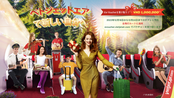また、ベトジェットの誕生日を記念して、12月18日から12月24日までの7日間、最大5,852円(100万ベトナムドン)分のEバウチャーをプレゼントします。詳細はhttp://evoucher.vietjetair.comをご覧ください。