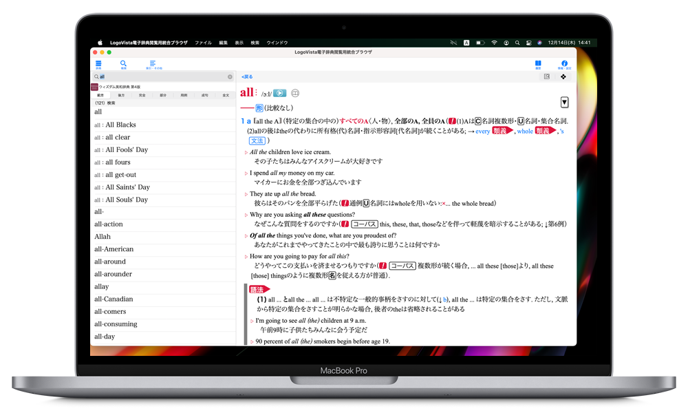 ロゴヴィスタ株式会社は、Apple社の運営するアプリケーションストアApp Store にて公開中である『LogoVista電子辞典閲覧用統合ブラウザ』のアプリ内課金にて購入できる『「ウィズダム英和辞典 第4版・和英辞典 第3版」』(macOS/iOS両対応版)を2023年12月22日より発売しました。