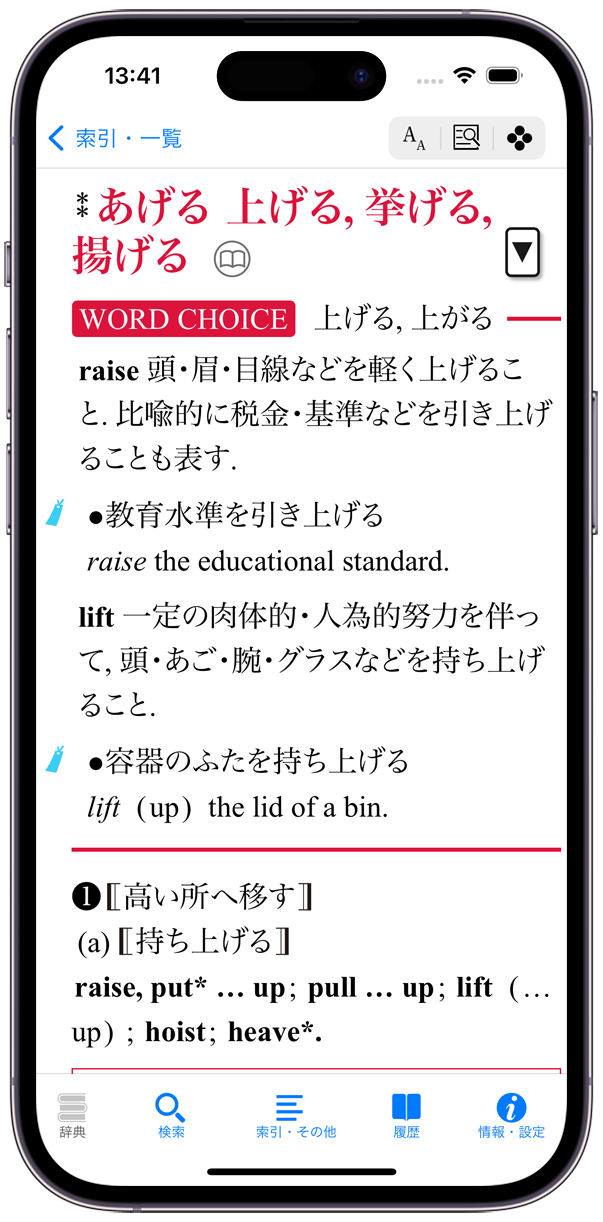 ●連続する辞書引きに役立つ履歴表示