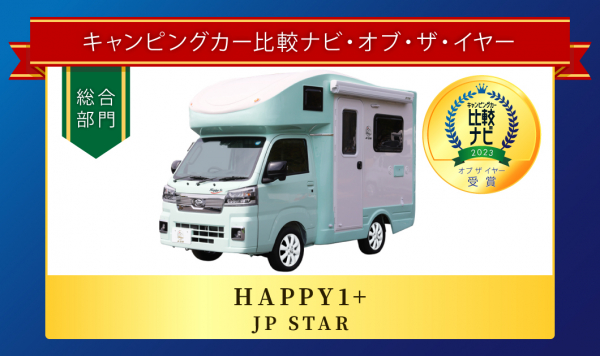 国内最大級のキャンピングカー情報サイト「キャンピングカー比較ナビ」において、2023年にもっとも多くの閲覧数を獲得した「キャンピングカー比較ナビ・オブ・ザ・イヤー」はJP STARの「HAPPY1+(ハッピーワンプラス)」となりました。