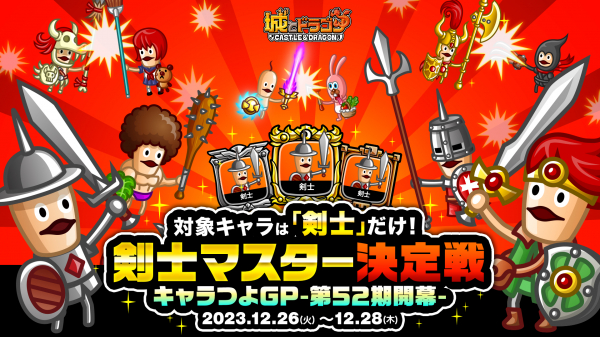 株式会社アソビズム(本社:東京都千代田区、代表取締役:大手智之)は、App Store・Google Playにて好評配信中の『城とドラゴン』で、2023年12月26日(火)より「剣士マスター決定戦」を開幕いたします。