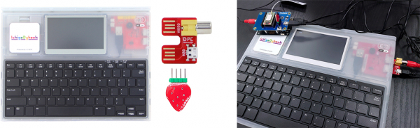 X-Loca用のBASICプログラムのインストールに必要な機材のセットです。IchigoJamのモニターとキーボードとして使える「IchigoDyhook」と「DPC」、X-Loca用プログラム入りのEEPROMが入っており、プログラムのインストール作業が容易にできます。IchigoDyhookは乾電池で動作するため電源が取れない室外での動作チェックにも便利です。