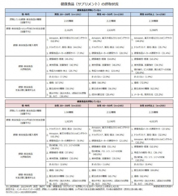 ここでは、健康食品(サプリメント)の摂取状況(種類、支出金額、購入場所、目的、重視する点)や摂取している成分・素材について、公表する。
