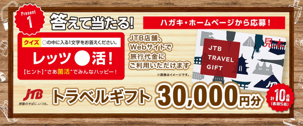 クイズに答えて当たるコースでは、JTBトラベルギフト30,000円分が10名様に。