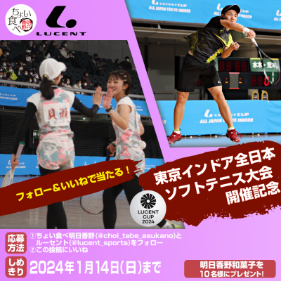 またSNSでは、60年以上も続く「東京インドア 全日本ソフトテニス大会」の開催を記念して、1月9日より、「東京インドア 全日本ソフトテニス大会開催記念キャンペーン」キャンペーンを開始しました。