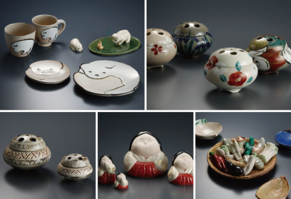 伝統的な京焼の作風を生かしつつ、置物・茶陶・現代のライフスタイルを彩る器など、窯焼成から絵付けまで一貫して職人による手作りにこだわり、ひとつひとつ丁寧に作られています。