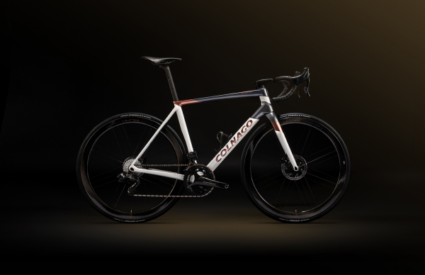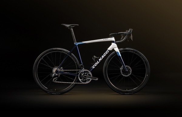 深みのあるネイビーブルーに、ホワイトとスティールブルーがモダンな印象を与えます。デザイナーがこだわった艶やかなホワイトは、コルナゴの得意とする高い塗装技術によって再現されています。金属のような質感を感じるブルーの塗装は、太陽光で輝き、複雑に面が取られたチューブのディテールを際立たせます。
