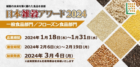 雑穀の普及に取り組む一般社団法人日本雑穀協会は、1月18日(木)~31日(水)の期間、日本雑穀アワード2024《一般食品部門》《フローズン食品部門》におけるエントリ―商品を受付いたします。