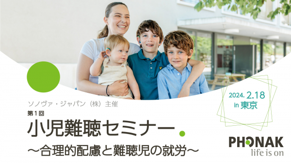 聴覚機器及びワイヤレス通信機器の世界的リーディングカンパニーとして躍進を続けるソノヴァ社(グループ本社・スイス連邦)の日本法人ソノヴァ・ジャパン株式会社(本社:東京都品川区、代表取締役社長:眞鍋 幸)は、展開する補聴器ブランド「フォナック」において、合理的配慮および難聴児の就労をテーマとした「小児難聴セミナー」を、2024年2月18日に開催します。