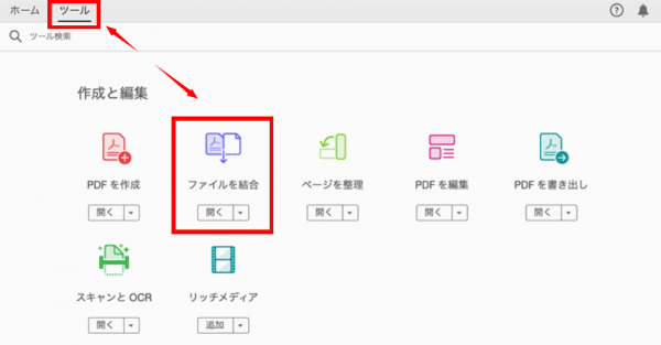 ステップ2.「ツール」メニューから「ファイルを結合」を選択します。