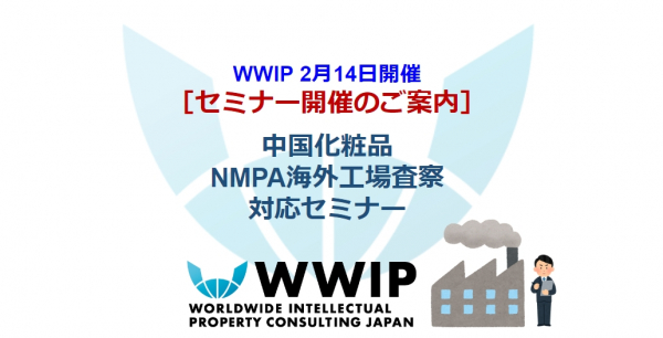 株式会社ワールドワイド・アイピー・コンサルティングジャパン (以下「WWIP」) は、化粧品生産工場・歯磨剤生産工場の査察対応者を対象とした「中国化粧品NMPA海外工場査察対応セミナー」を2024年2月14日(水)13:30~15:30に開催いたします。