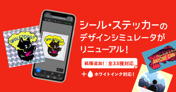 また、デザインシミュレータでシール・ステッカーの定形サイズの注文に対応しました。ニーズが高い形状・サイズを厳選した定形サイズは、通常よりも少しお得にご注文いただけます。注文サイズに迷われる場合は、ぜひご利用ください。