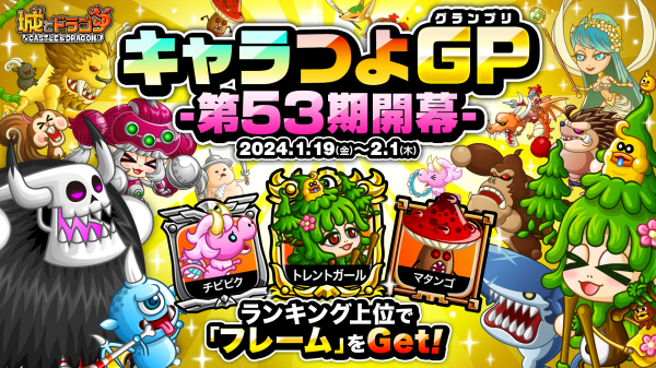 株式会社アソビズム(本社:東京都千代田区、代表取締役:大手智之)は、App Store・Google Playにて好評配信中の『城とドラゴン』で、2024年1月19日(金)より「キャラつよグランプリ第53期」が開幕いたします。