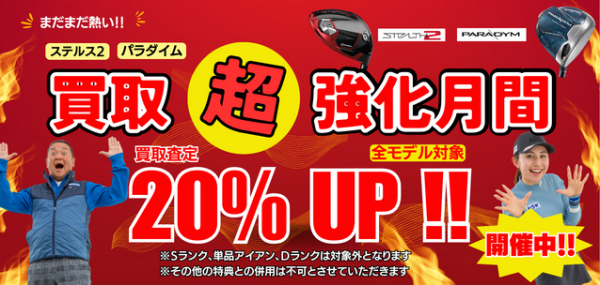 株式会社ゴルフ・ドゥ(本社 さいたま市 代表取締役社長:佐久間功)は、「ゴルフドゥ!」24店舗において、「ステルス2、パラダイム買取超強化月間」(以下、本企画)を2024年2月29日(木)まで実施中です。
