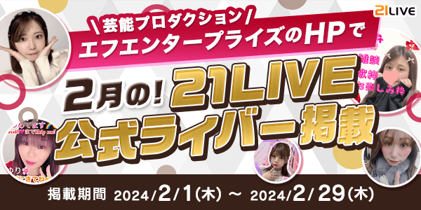2月1日(木)より、21LIVEの2月度公式ライバーが芸能プロダクション・株式会社エフエンタープライズ(F.Enterpris)のホームページに掲載されています!(https://fenterprise.jp/)