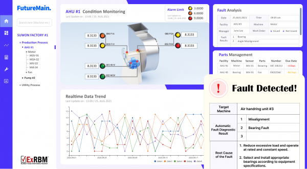 韓国の京畿道水原市に本社を置くFutureMain社は、先進的な技術力と設備の診断・評価技術によってお客様の未来を創造する、エンジニアリング&技術コンサルティング企業です。創業以来、37年以上積み重ねてきたノウハウと専門性により、設備保全分野などにおいて、発電所、化学プラント、二次電池、造船、製薬、製紙、化粧品、食品、自動車部品など30社以上の顧客に最高品質の技術サービスと独自のソリューションを展開しています。また企業の設備管理の最適化のために、発生している障害の種類を正確に指定することで障害を自動的に検出および予測するAI予知保全ソリューション「ExRBM」を提供。FutureMainは真の意味でのスマートファクトリー構築を通じ、ESG経営の実現を支援します。