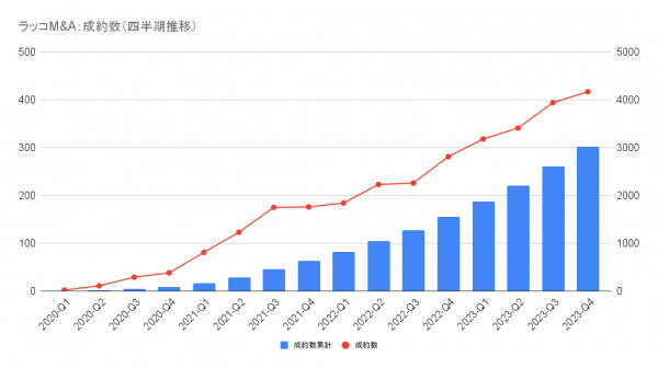 ラッコ株式会社(福岡市中央区)が運営するサイト売買プラットフォーム「ラッコM&A」は、2023年第4四半期(2023年10月~12月)に、過去最多となる417件のサイト売買成約を記録しました。