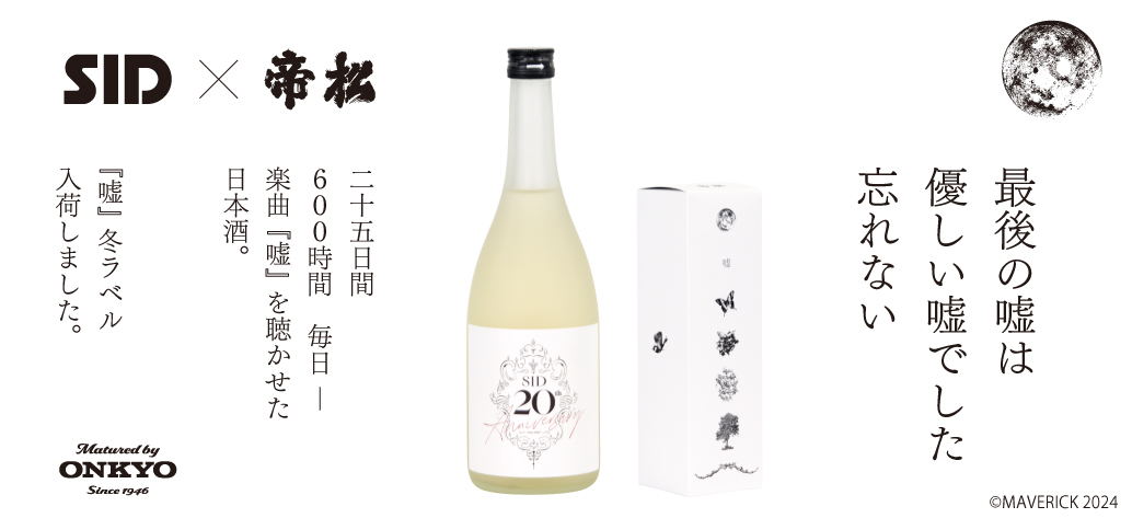 新たな音楽食品ビジネスについて、埼玉県小川町の帝松ブランドの酒蔵、松岡醸造株式会社と手を組みシド※1の楽曲を聴かせた日本酒『嘘』冬ラベルを発売することが決定しましたのでお知らせいたします。