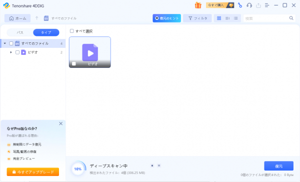 Tenorshare 4DDiG V10.0は、「SDカード」や「高度な動画復元」を追加して、復元率が向上させました。