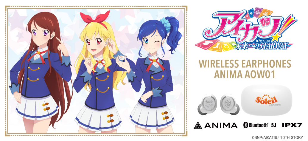 オンキヨー株式会社(所在地:大阪府大阪市、代表取締役社長:大朏 宗徳)は、完全ワイヤレスイヤホン『ANIMA AOW01』と、劇場版アニメーション『アイカツ!10th STORY 未来へのSTARWAY※1』とのコラボレーションモデルを受注販売いたします。