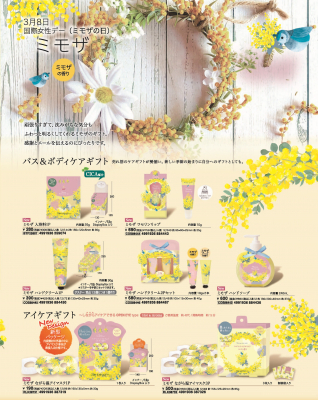 3月8日は国際女性デー(ミモザの日)です。ミモザは愛と幸福の象徴でもあり、春の訪れを告げるようなミモザがあふれるデザインのギフトシリーズです。