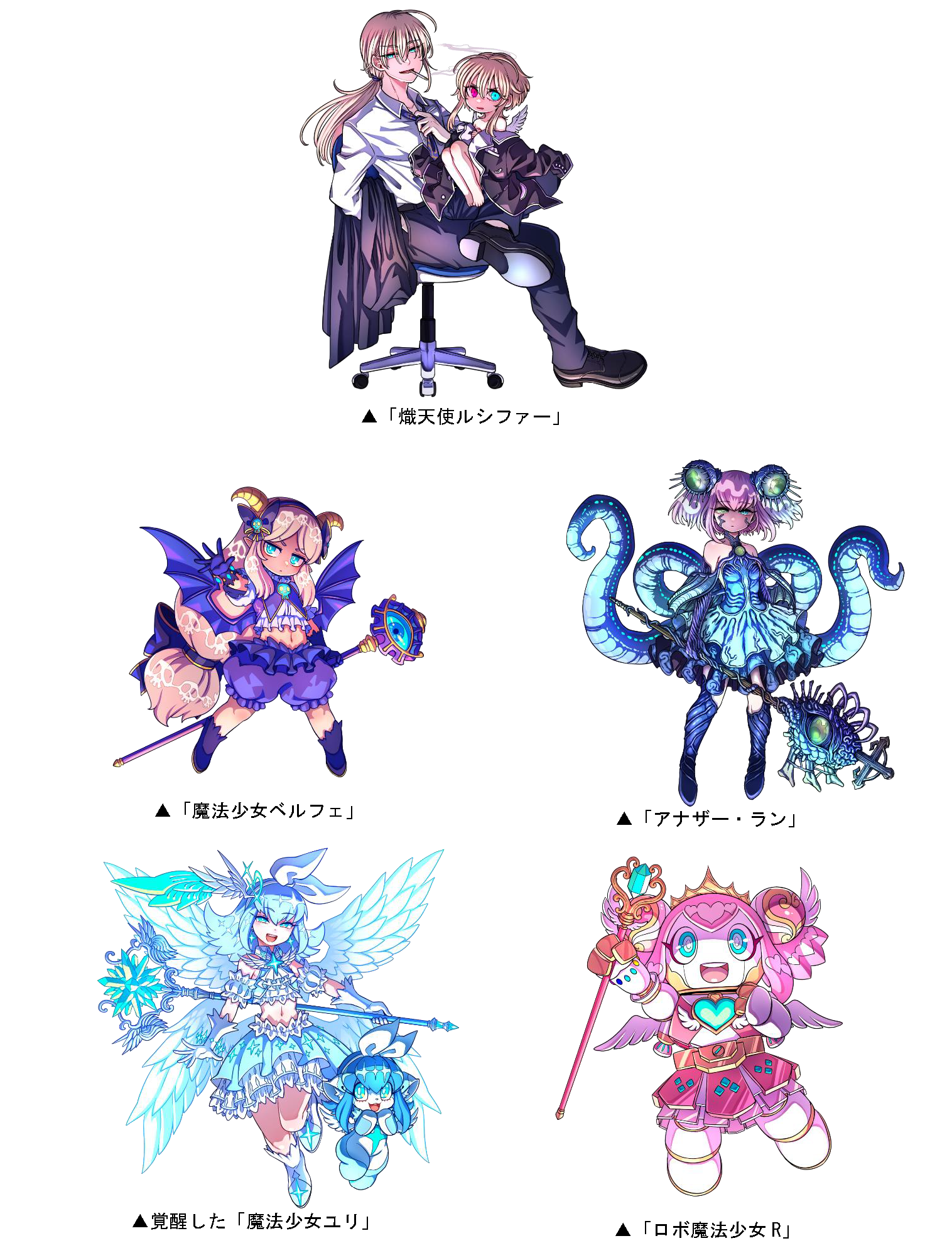 本ダンジョンには、ボスとして「熾天使ルシファー」が出現します。また、道中には「魔法少女ベルフェ」「アナザー・ラン」「ロボ魔法少女R」覚醒した「魔法少女ユリ」が出現し、クリアした回数に応じて竜石を手に入れることができます。また、クリアした際に手に入る「ワルプルギスP」を貯めると、DRAレア「ロボ魔法少女R」などと交換できます。