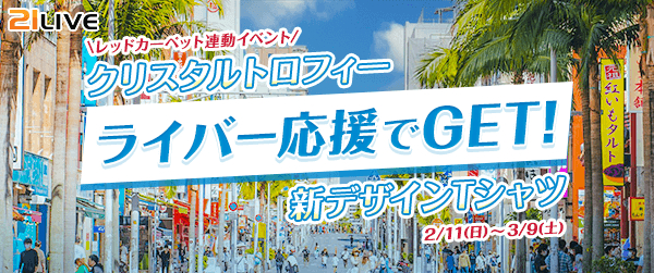 株式会社エムアンドティーティー(本社:沖縄県北谷町、代表取締役:井藤 三知子)が運営するエンターテイメント・ライブ配信アプリ【21LIVE(ニーイチライブ)】URL: https://21.live では、2月11日(日)から3月9日(土)にかけて年に一度のスペシャルランキングを開催。TOP12にランクインしたライバーは、第16回「島ぜんぶでおーきな祭 沖縄国際映画祭」のレッドカーペットへご招待いたします。