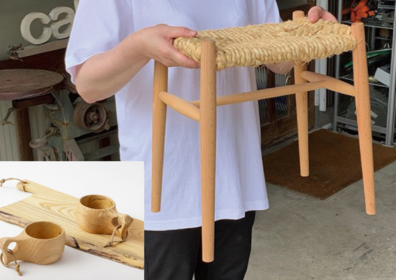 毎年人気、飛騨の木工職人と一緒に作るワークショップ。人気のスツールに加え、カッティングボードや「ククサ」カップをお選びいただけます。ご自分だけの愛着溢れる一点物を作りませんか。