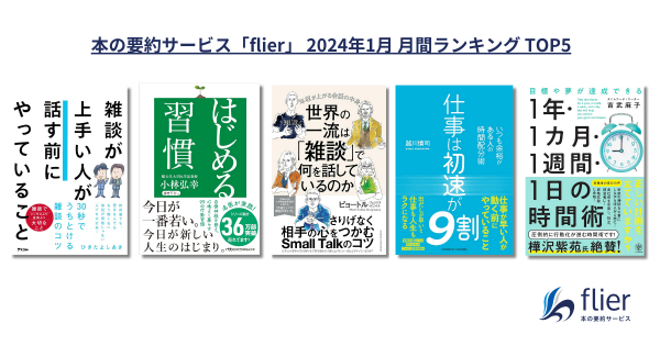 累計会員数112万人を突破した本の要約サービス「flier(フライヤー)」を運営する株式会社フライヤー(本社:東京都千代田区、代表取締役CEO 大賀康史)は、2024年1月のビジネス書月間ランキングを発表しました。