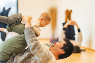 ベビーヨガ(R)では、緊急時にも使える抱っこの仕方”ファイヤーマンホールディング”という抱き方があります。この抱っこの仕方を普段の遊びの中で身につけておくことが、いざとう時に役立ちます。