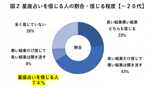 星座占いの結果を信じる人の割合・信じる程度【~20代】
