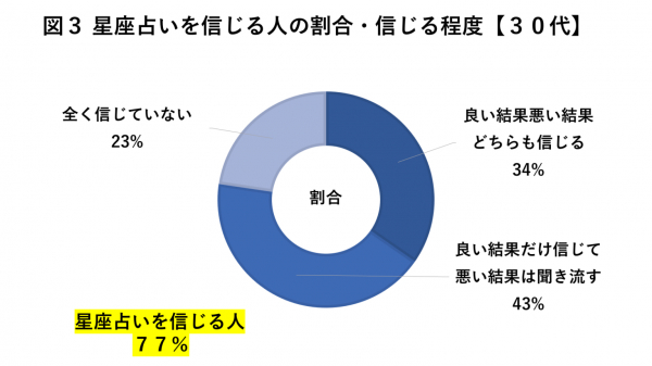 星座占いの結果を信じる割合人の割合・信じる程度【30代】