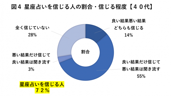 星座占いの結果を信じる割合人の割合・信じる程度【40代】
