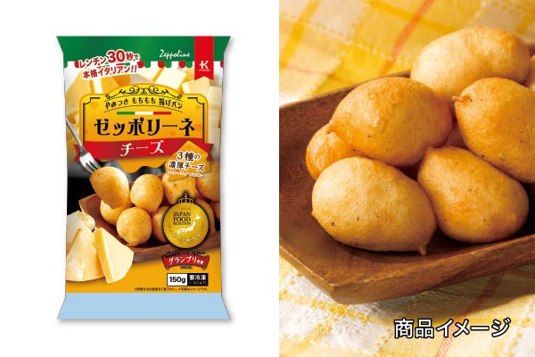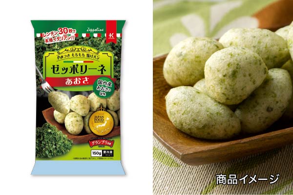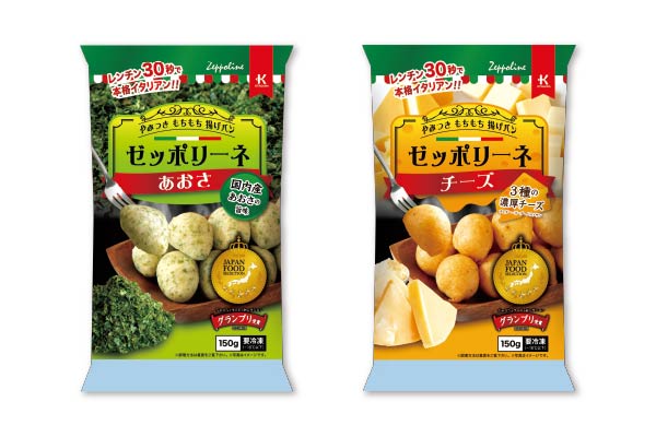 『ゼッポリーネシリーズ』は調理方法に簡便な電子レンジ調理、常温解凍調理、生地表面のクリスピーな食感をお楽しみ頂けるオーブン調理等を採用し、内容量をエンドユーザの様々なライフスタイルにマッチしやすい150gとする事で、エンドユーザに手にとって頂きやすい商品設計とした一口サイズの本格イタリアンです。『ゼッポリーネ あおさ』は国内産あおさの豊かな味わいともちもちとした食感を、『ゼッポリーネ チーズ』は3種のチーズ(チェダー・ゴーダ・パルメザン)の濃厚な味わいともちもちとした食感を簡単にご家庭でお楽しみ頂けます。