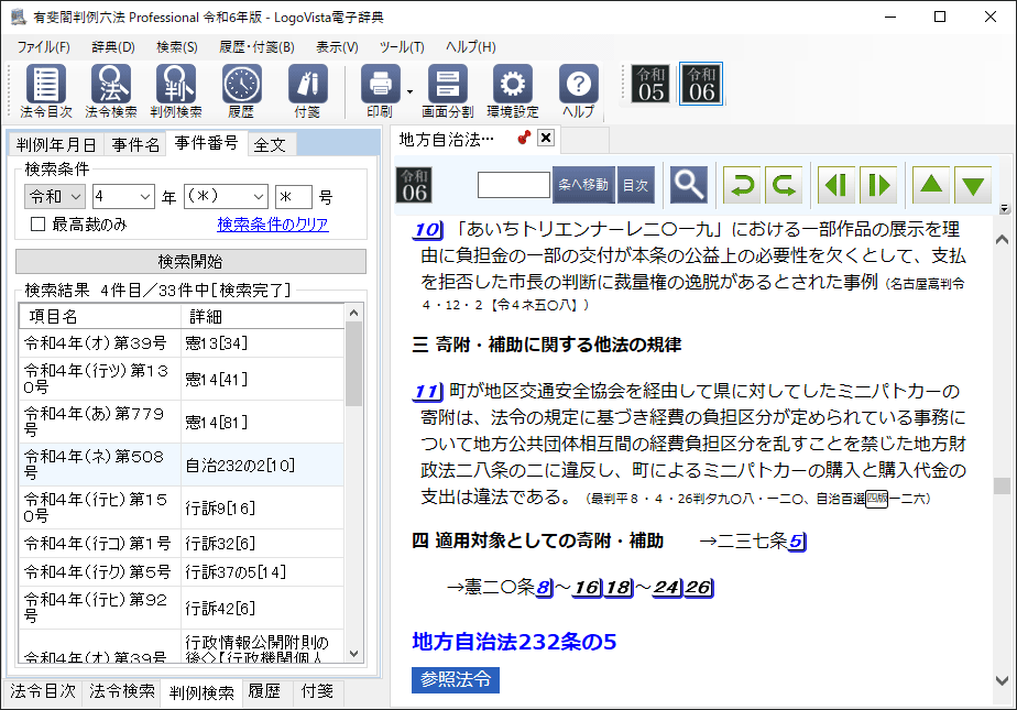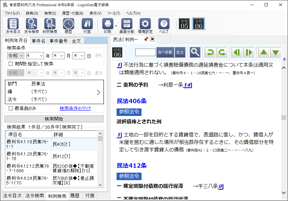 『有斐閣 判例六法 Professional 令和6年版』は、的確な判例要約を明快な見出しで体系的に分類整理した、実務家向け判例付き六法の決定版です。法令集の代名詞である有斐閣の『六法全書』を基礎とした豊富な情報量の参照条文を収録しています。“重い”、“かさ張る”を解消した使いやすい判例付き電子六法です。