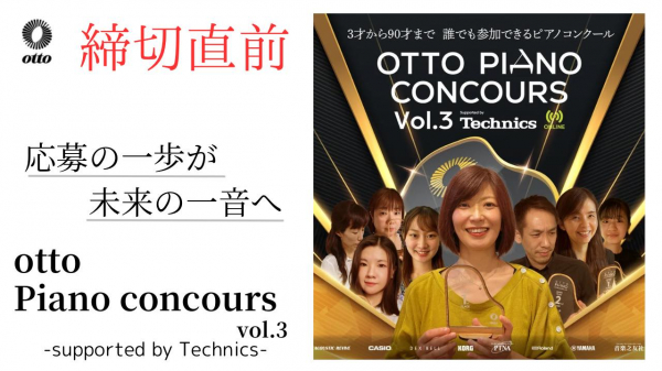「otto Piano concours Vol.3」のエントリー締め切りが残り一週間となりました。