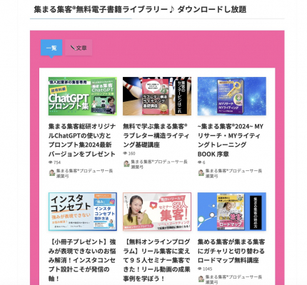 電子書籍ライブラリーは、集まる集客を無料で学んでいただける電子書籍を、最新から過去のバックナンバーまで一挙に取り揃えており、読者のみなさまにいつでもお手にとっていただける図書館のような場所です。