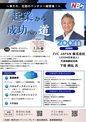 コロナ禍で瞬く間に普及したオンラインミーティングツールZOOMの日本法人の代表取締役会長に就任した下垣典弘氏に登壇いただき起業から成長に至る道筋と今後の成長戦略をグローバル目線でお話しいただきます。