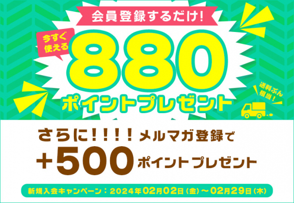 株式会社ゴルフ・ドゥ(本社 さいたま市 代表取締役社長:佐久間功)が運営するゴルフドゥ!オンラインショップでは、新規会員登録で880ポイントをプレゼント、さらにメールマガジンの登録で500ポイントをプレゼントする「2月度新規入会キャンペーン」を2024年2月29日(木)までの期間で実施中です。付与された880ポイントは会員登録(本登録)後、すぐに使うことができるポイントであり、かつ送料相当のポイントです。そのため、初回は実質送料無料でお買い物が楽しめます。