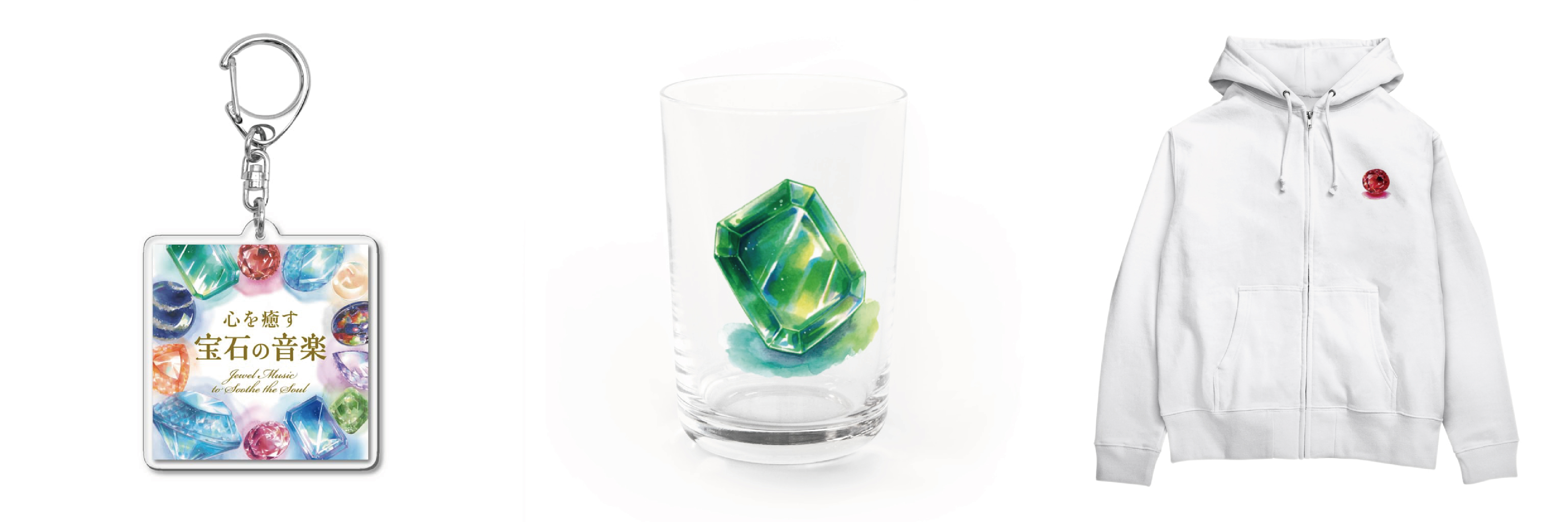 2023年2月に株式会社デラより発売したCD『心を癒す宝石の音楽』のために、コピックアワード2021準グランプリ等を受賞して注目を集めるアーティストCYONが書き下ろした12の誕生石(宝石)のイラストならびに、ジャケット画像を使用した公式グッズショップを、オリジナルグッズ作成・販売プラットフォーム「SUZURI」内に、2024年2月9日(金)~3月10日(日)の間、期間限定でオープン致します。