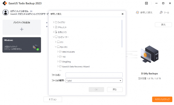 ステップ2.復元したいバックアップファイルを選択します。(EaseUS Todo Backupで作成されたバックアップファイルはpbdファイルです)。